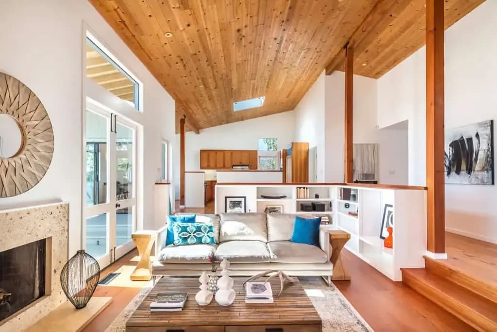 In life, Audrey Emmons understood the meaning of breaking new ground. After all, she was the first female architect to be employed by esteemed Bay Area architect, William Wurstler, in the 1950’s. In the 80’s, Emmons was commissioned by her friend to build a family home in Stinson Beach. The result was a transcendant home that quietly merges with the natural beauty that surrounds it. Light infused, open spaces, connect with both water and mountain. Materials are natural and understated. The walls were designed to feature the homeowners art and the T-shaped structure created two courtyards aimed for congregation.