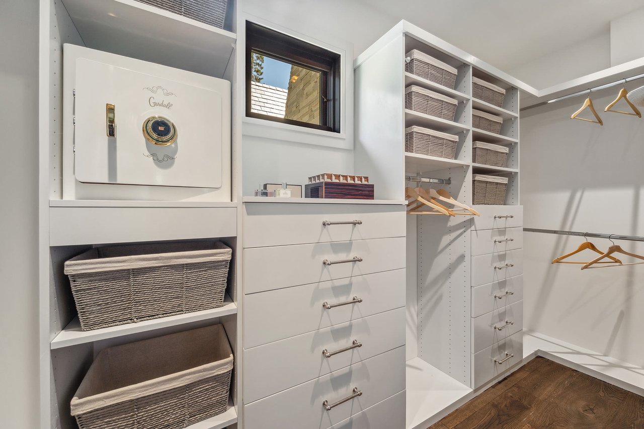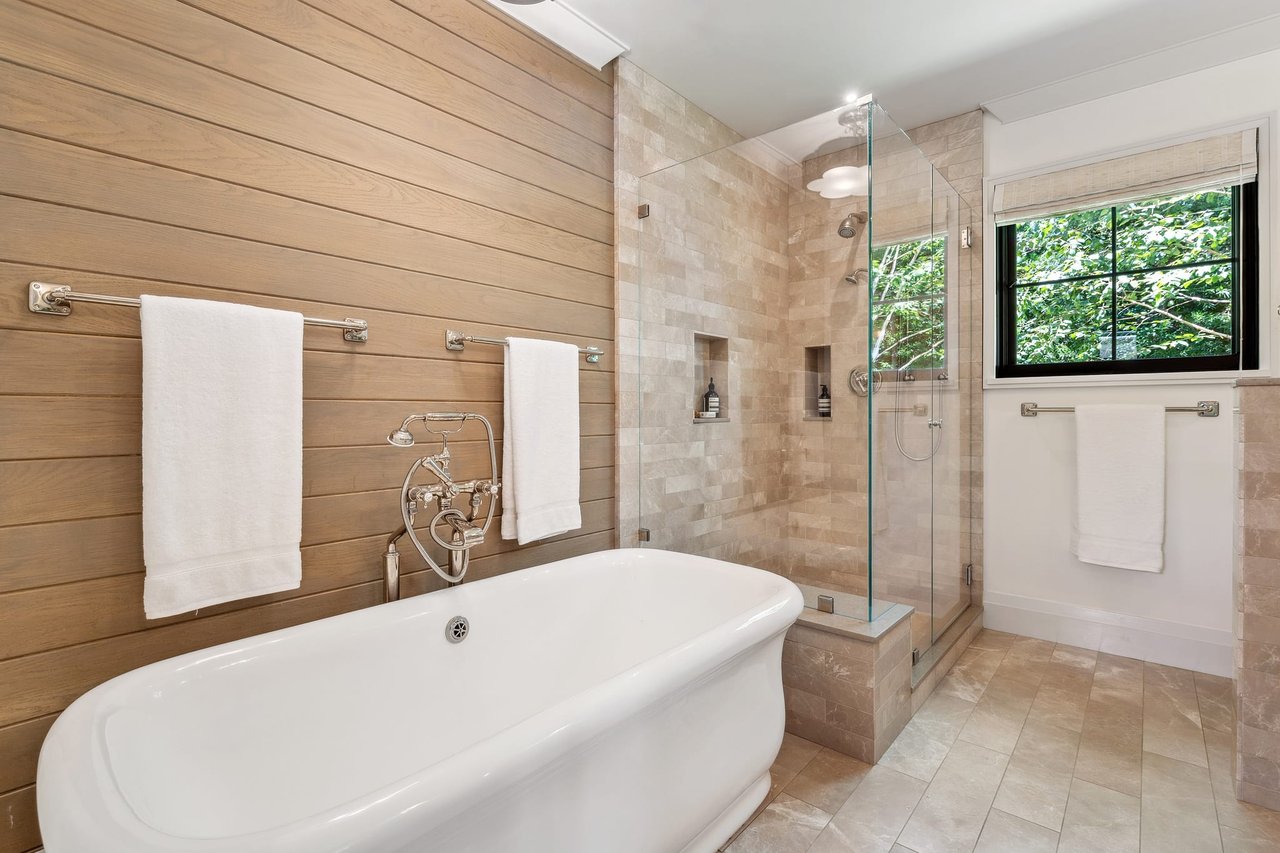 Elegant dual suites, on the main level, feature luxuriant bathrooms and exude an air of relaxation. The primary suite features a grey-wash oak paneled ceiling, lounge area, and an oversized free standing soaking tub. Richly saturated colors produce a sense of whimsy in the kid’s bedroom wing. This hub area is playful, cozy and just the right size. A large flex room downstairs offers great potential as a playroom or hangout space for the kids or a home office or gym option for adults.